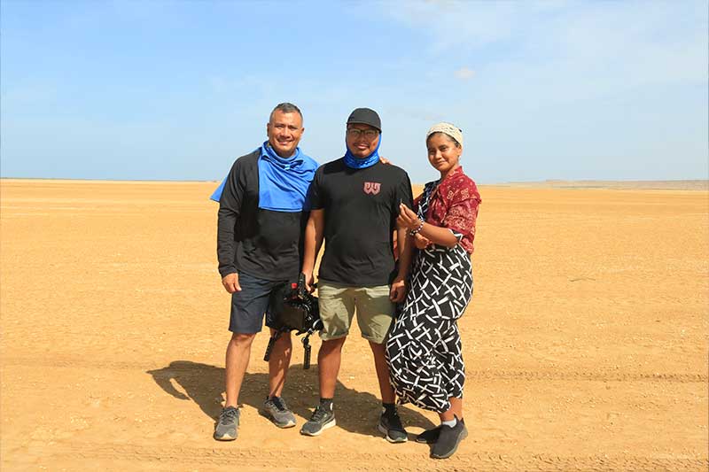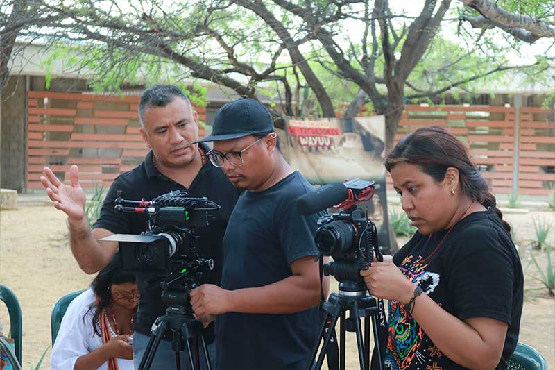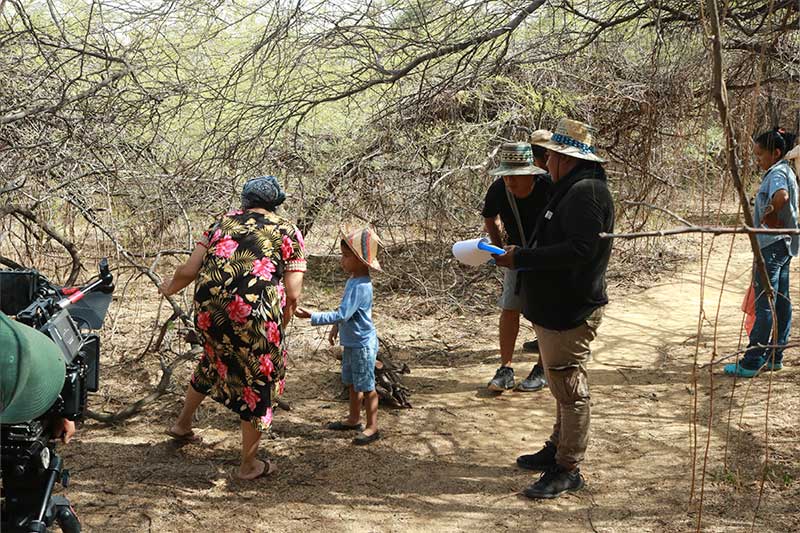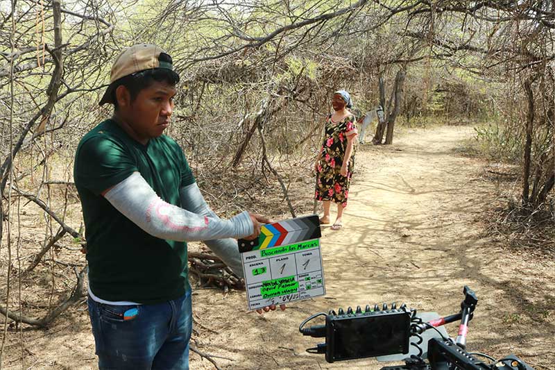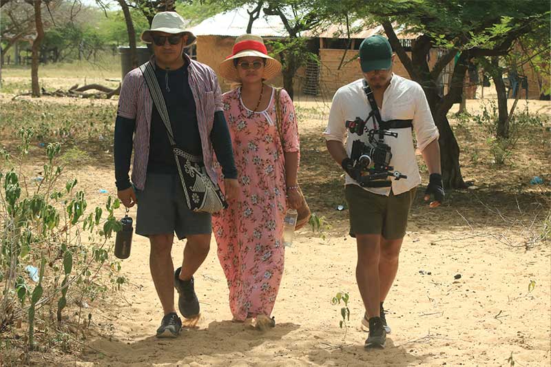 En el caminar por el territorio, en el ejercicio de escuchar historias y plasmarlas en imágenes y sonidos, encontramos comunidades, memorias y personajes que enriquecen nuestro documental y nuestra espiritualidad wayuu. Rodaje del largometraje documental ‘Buscando las marcas del Asho’ojushi’, dirigido por David Hernández Palmar y Marbel Vanegas Jusayu y está producido por Leiqui Uriana y Jonathan Luna en donde Duiren Wagua es director de fotografía y operador de cámara.